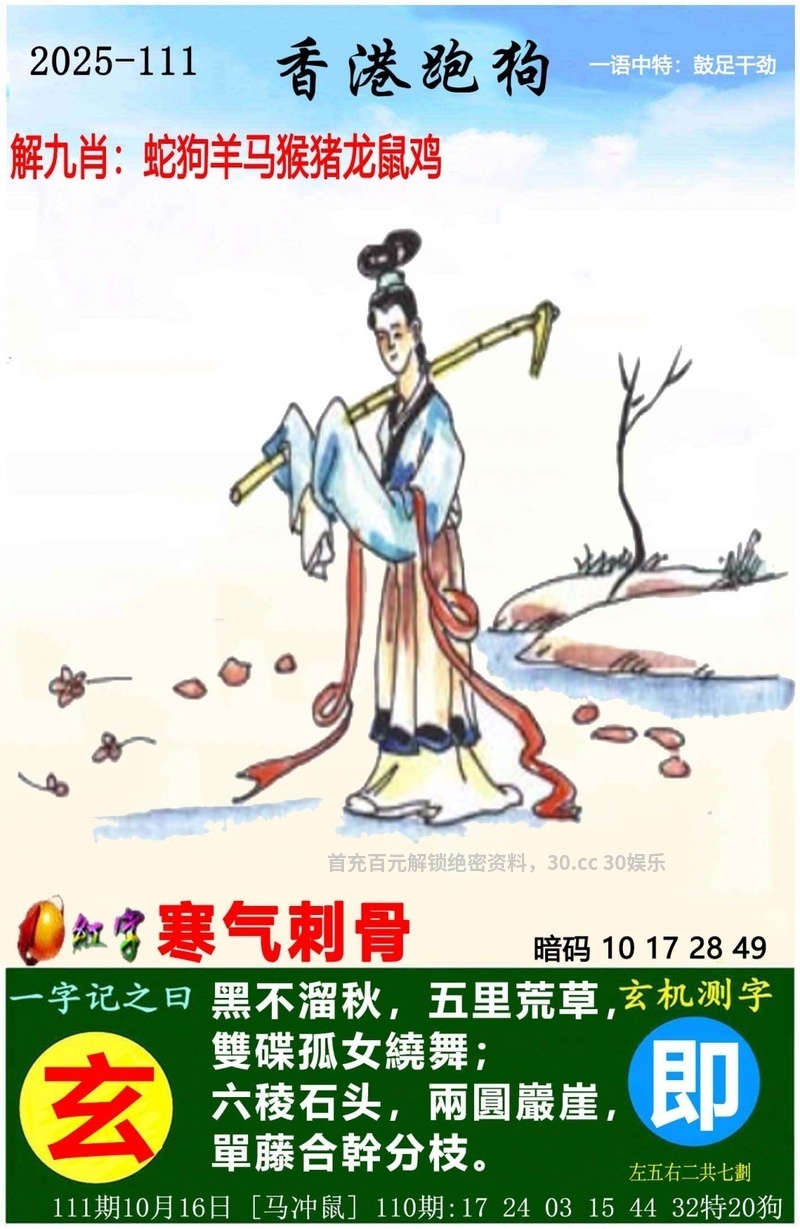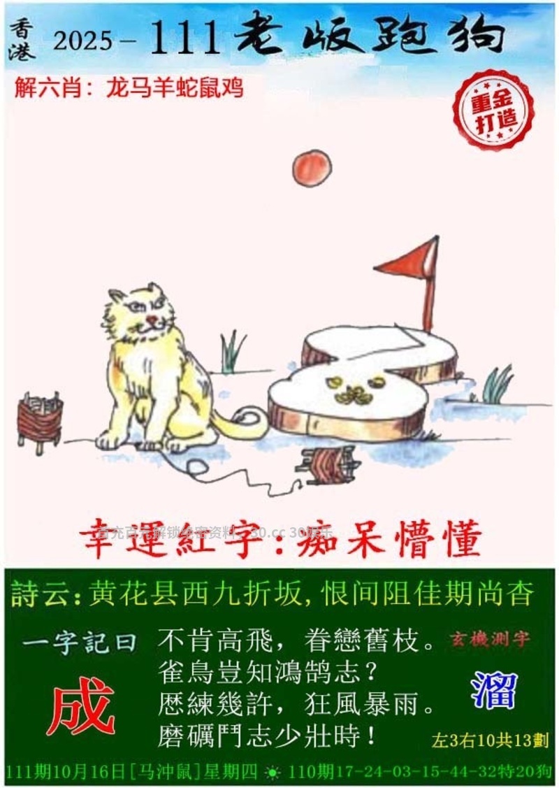 2025-104期:看见别人都那么努力,那么勤奋,那么意气风发地走在成功的路上,你问问自己,难道就不想成为他们的绊脚石吗? 解:本期幽默玄机中不老实本分做好自己,还劝人当绊脚石,狗拿耗子净干多余又添乱的事,本期解得狗肖 |